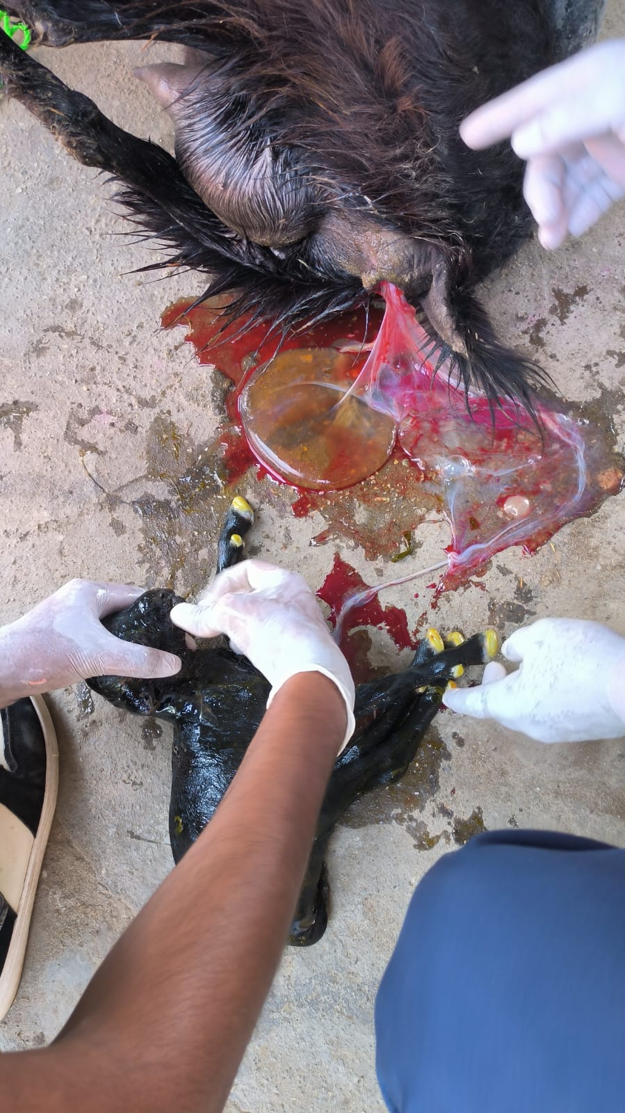 बाख्राको डिस्टोकियाबाट बच्चा निकाल्दै
